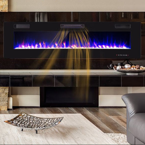 68-Inch Ultra-Thin Electric Fireplace – Recessed or Wall-Mounted with Crystal Log Decoration