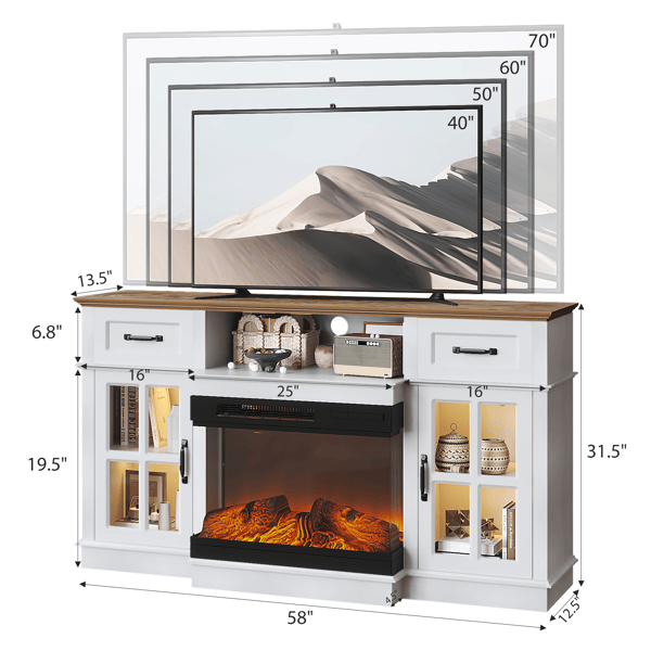Fireplace TV Stand with Electric Fireplace – White TV Console with Storage